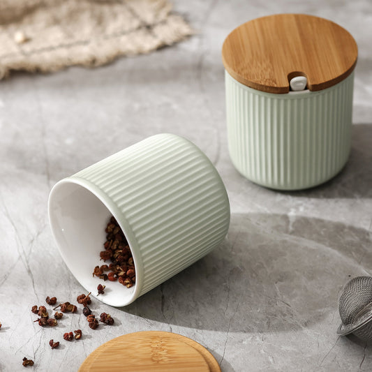 3-Piece Ceramic Spice Jar Set with Bamboo Lids